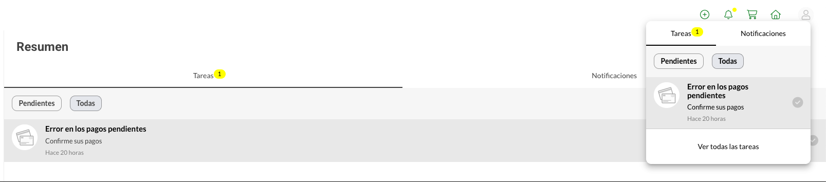 Ahora, los movimientos con Error en el pago se recordarán en las tareas y notificaciones del usuario hasta que se solvente. Para ello, es necesario que el usuario esté en estado Activo. Es un nuevo recordatorio que procesa un link de pago siempre y cuando el usuario tenga un movimiento en error en el pago y no se hayan gestionado. El aviso sería diario hasta que gestione el Error en el pago. Solo llega a movimientos en este estado (vinculados solo al método de pago con tarjeta).